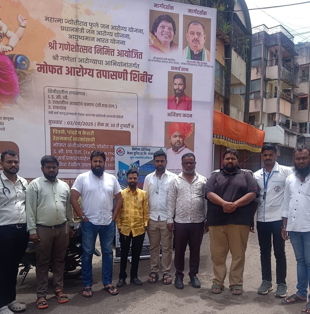 Continuing its mission to make quality healthcare accessible to all, Sanjeevan Intensive Care Unit Pvt. Ltd., Satara, in association with the National Congress Party, Bal Shivaji Yuva Pratishthan, and Mee Muslim Mavla Chhatrapatincha, organized a Free Health Check-up Camp in Satara under the “Shri Ganesha Arogya Abhiyan” initiative.