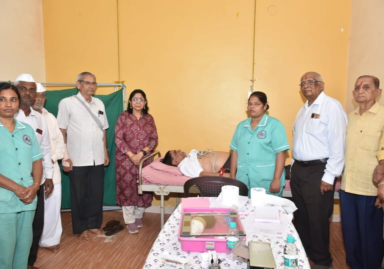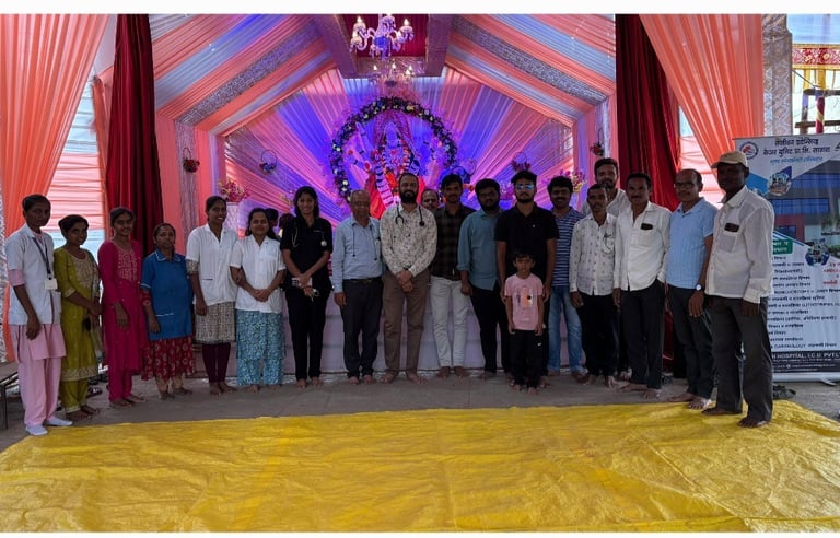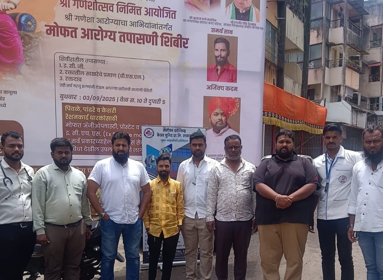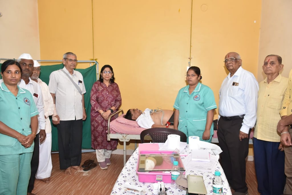 Sanjeevan Hospital, in collaboration with major national health schemes, organized a complimentary medical camp at Shivaji Chowk, Kinai during the Navratri festivities. More than 60 participants underwent screenings including blood pressure, sugar levels, ECGs and general health checks.
