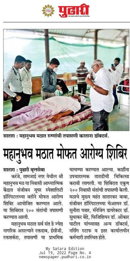 Demonstrating a strong commitment to community welfare, Sanjeevan Multi-Speciality Hospital, Satara organized a free health check-up camp at Mahanubhav Math, Satara.