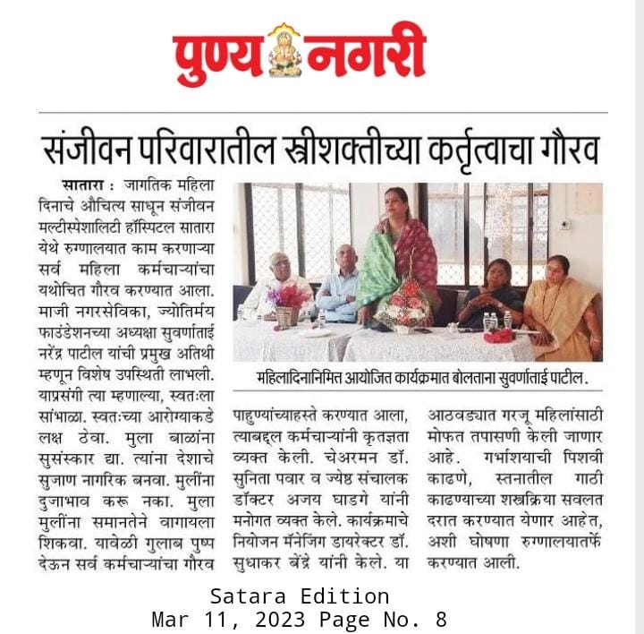 On the occasion of International Women’s Day, Sanjeevan Multi-Speciality Hospital, Satara organized a special felicitation ceremony to honor and celebrate the exceptional women employees whose dedication and service continue to inspire everyone at the institution.